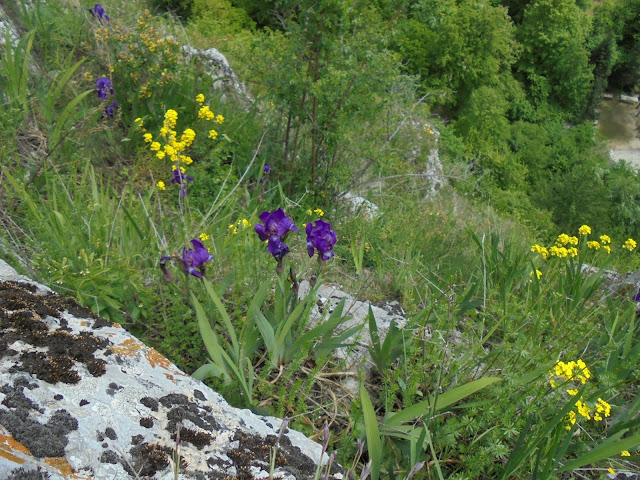Adesea vin aici in cursul saptamanii cand vreau sa stau singura in liniste sa ascult trilurile pasarelelor si sa admir florile superbe ce cresc pe varful acestor stanci.Azi am venit sa admir irisii (Iris aphilla) si garofitele de stanca ,dar care inca nu au inflorit.Imi place sa stau la inaltime ,sa privesc departe peste varful copacilor!Voi cobori de pe aceasta stanca si voi urca pe cea din fotografia de mai jos,pe care am urcat si asta iarna prin zapada pana la genunchi.De acolo se vede Valea cu Apa si imprejurimile.