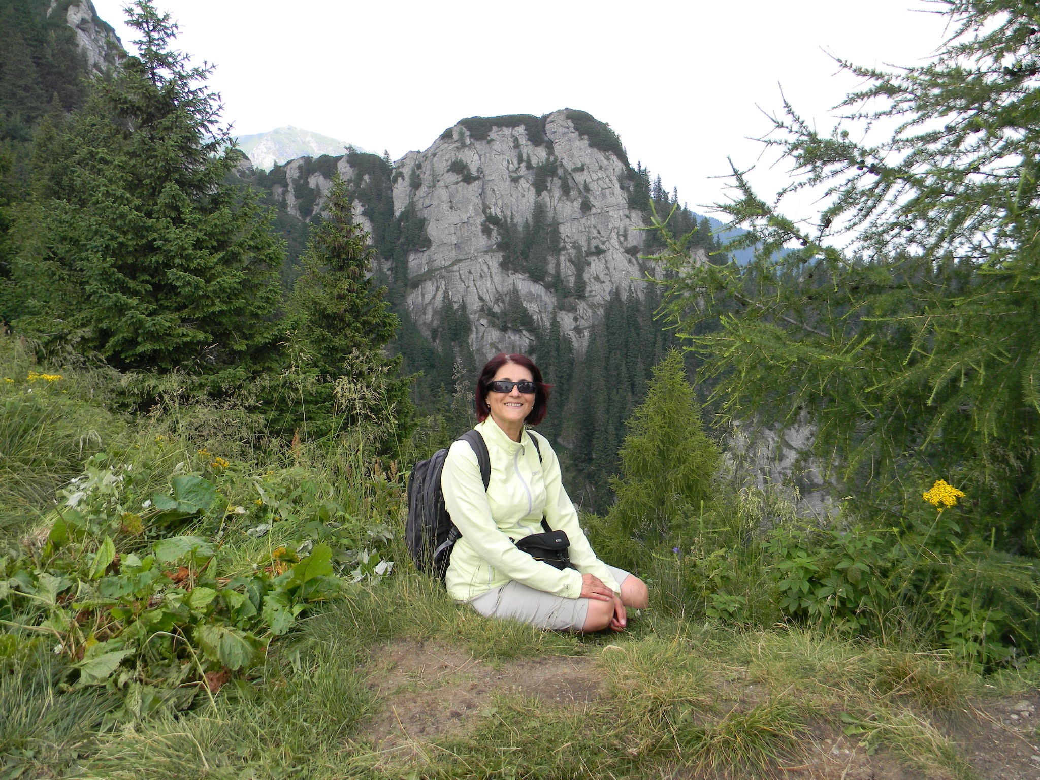 Aici gasim un izvor cu apa rece ca gheata ,asa ca nemaintalnind alta sursa de apa pana la Malaiesti ne aprovizionam.Urcam prin padure si ajungem intr-o poienita la Pichetul Rosu.Aici vom avea dublu marcaj pe traseu;BR spre vf.Omu si TR spre Malaiesti fiind treseu comun pana la Prepeleac.La un moment dat ,asteptata de mine de mult timp ,apare Valea Bucsoiului in toata splendoarea sa!Traversam valea si ajungem la o bancuta.De aici tot pe curba de nivel prin padure traversand mai multe valcele ajungem la Prepeleac.Aici traseul se bifurca ,pe banda rosie se urca pieptis pe Bucsoiu ,traseu numit Deubel.Acesta e un traseu foarte dificil!Noi vom continua inainte spre Malaiesti pe traseul Tache Ionescu.Traversam un valcel unde trecerea e amenajata de lant si doua scarite.Apoi urmeaza o urcare pe o panta mare pe o poteca ingusta,sapata in pamant cu maluri inalte,cel mai dificil segment al traseului!Privind inapoi spre Diham ,se aud tunete ,undeva in Piatra Mare si Baiului ploua de rupe...Incepem coborarea spre Malaiesti.Ramasa ultima pe poteca si privind cu atentie stanca din fata ce-mi vad ochii? ....o capra neagra cocotata pe stanca ,ce a stat cuminte la pozat ,ba chiar m-a privit cateva secunde apoi a disparut pe parte cealalta .