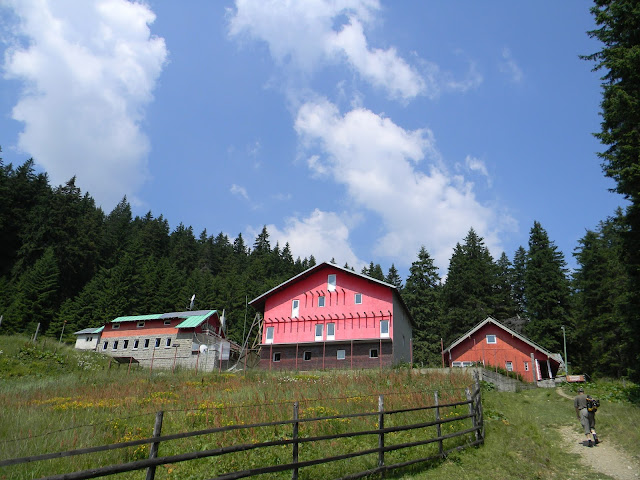 Trecand de Poiana Izvoarelor ploaia s-a oprit am traversat poiana si padurea iar la iesirea din padure spre Saua Diham s-a pornit prapadul peste noi.In cateva minute a cazut grindina de era totul alb pe sub brazi.Ne-am adapostit care cum a putut ,Marius si Viorica erau bine echipati cu pelerine eu avand doar geaca de goretex si pantaloni scurti subtiri.M-a udat ca mi se lipisera pantaloni de fund...Betele de trecking le-am sprijinit de un brad alaturat sa nu fie aproape de mine fiind metalice.La plecare acolo le-am uitat ...coborand spre masina dupa circa 1 km am realizat ca-mi lipsesc.M-am intors dupa ele ,era pe inserat ,n-am apucat sa ajung pana la locul unde le lasasem deoarece m-au simtit cainii de la stana ,au inceput sa latre si veneau spre mine unul cate unul ,la un moment dat erau vreo 5.Chiar mi-a fost frica asa ca m-am retras cat mai repede, intrand pe drum am rupt-o la fuga ...Uite asa am ramas fara bete de trecking in tura asta.Sunt cele din imagini ,cine le-a gasit sa mearga sanatos sprijinit in ele.Intre timp mi-am cumparat altele.Sper sa nu le mai uit proptite de vreun copac ! Am venit a doua zi,le-am cautat dar disparusera!