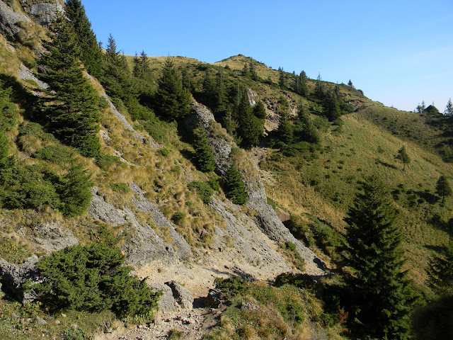 Aici poteca se mai domoleste si peisajul se schimba;aici vedem Culmea Chirusca.